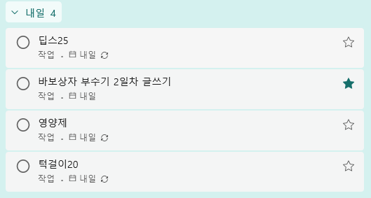 내일 할 일에 "바보상자 부수기 2일차 글 작성" 을 추가하고 중요 표시도 해 놨다.