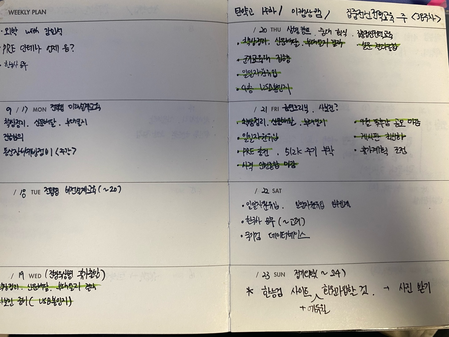 텐바이텐에서 위클리 플래너를 사서 가방에 넣고다니면서 작성했다. 다꾸(다이어리 꾸미기)엔 재능이 없어보인다