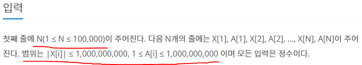 주어지는 값의 범위가 매우 크기 때문에 오버플로우에 주의해야 할지도 모르겠고